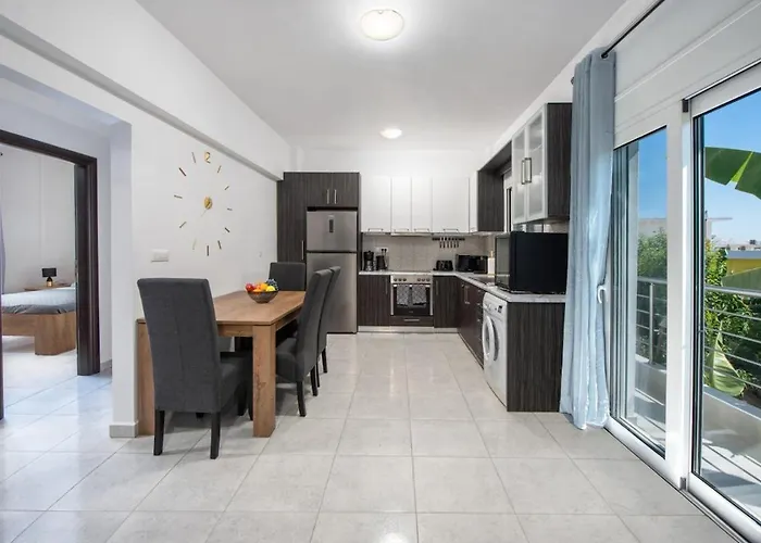 Το Rhodes Center 2-Bedroom Apartment Rhodes City 75 τ.μ. Έχει θέα στον κήπο και απέχει 2 χλμ. από τη Μεσαιωνική Πόλη. Για τους επισκέπτες που επιθυμούν να εξερευνήσουν την περιοχή υπάρχει δυνατότητα ενοικίασης ποδηλάτων και αυτοκινήτων.